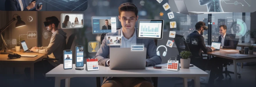 Au-delà de la flexibilité, la formation e-learning se distingue aujourd’hui par la richesse de son écosystème technologique. Les plateformes de formation en ligne intègrent désormais des outils immersifs et des solutions pédagogiques de pointe qui dépassent largement les simples vidéos de cours. Réalité virtuelle, intelligence artificielle, gamification et analytics avancés redéfinissent la manière dont nous concevons, suivons et évaluons l’apprentissage.